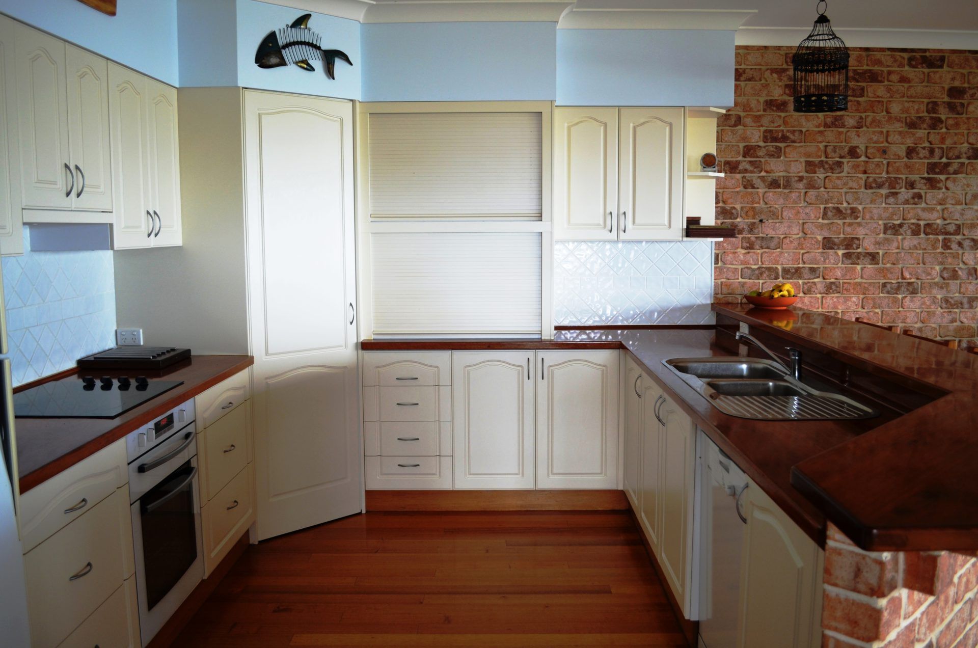 Level one boasts combined kitchen, living and dining room which opens out onto the covered balcony to take in the ocean views. The kitchen is serviced with a glass cooktop and dishwasher to ensure mum has a holiday too, polished timber flooring throughout with huge wooden outdoor table for the balcony. Master bedroom with built-ins and balcony exit with ocean views. Second bedroom with built-ins and laundry at rear next to the backyard exit.