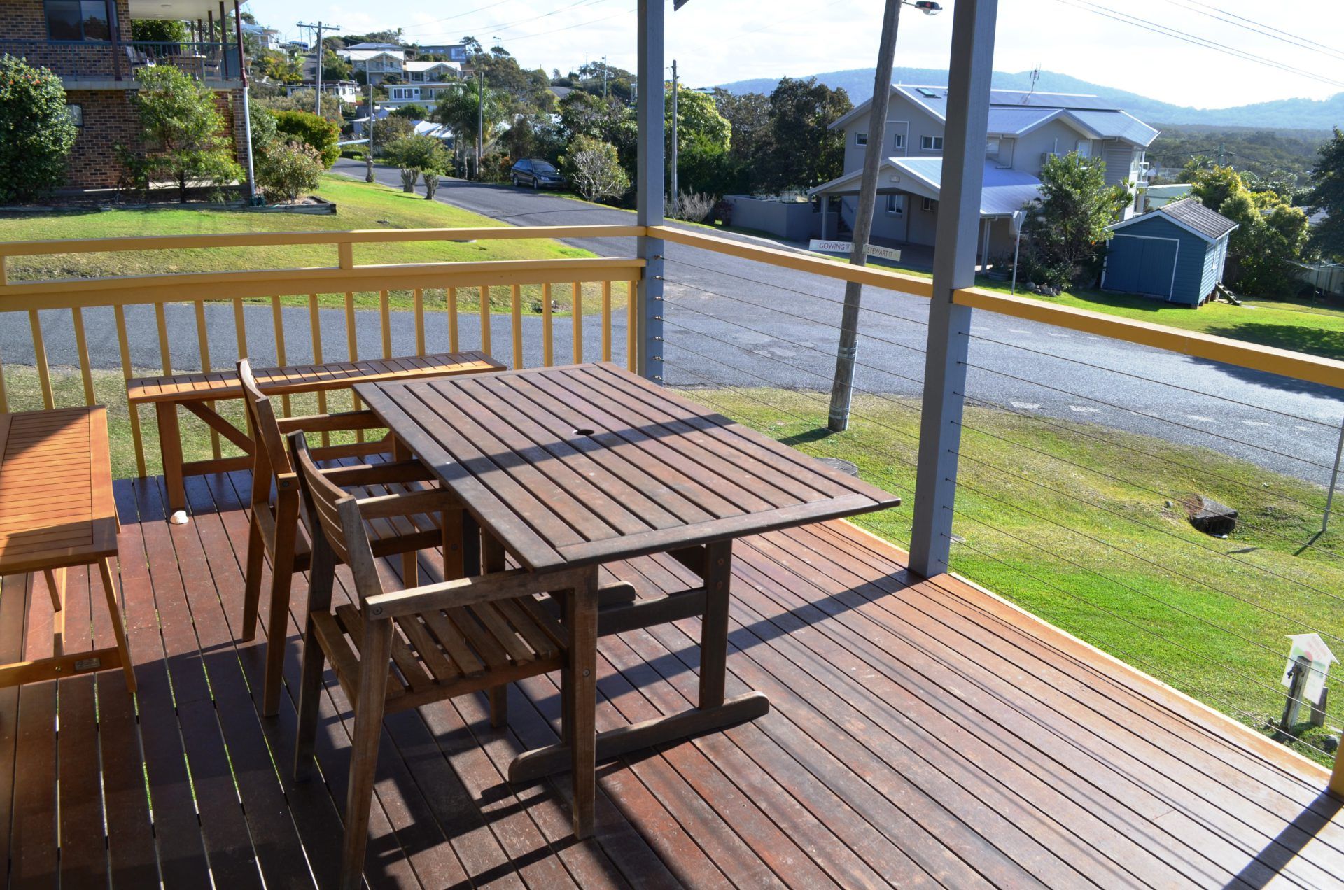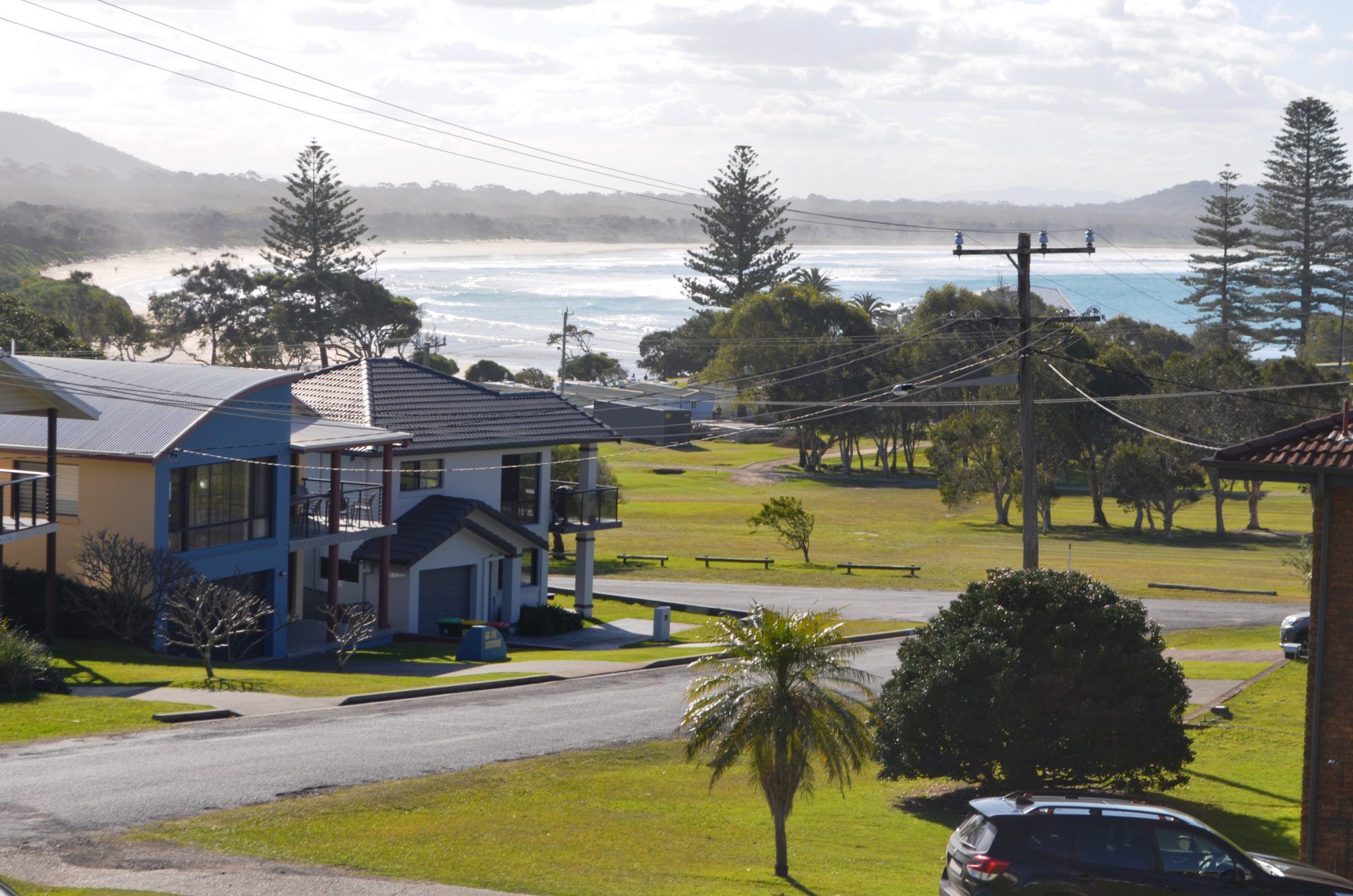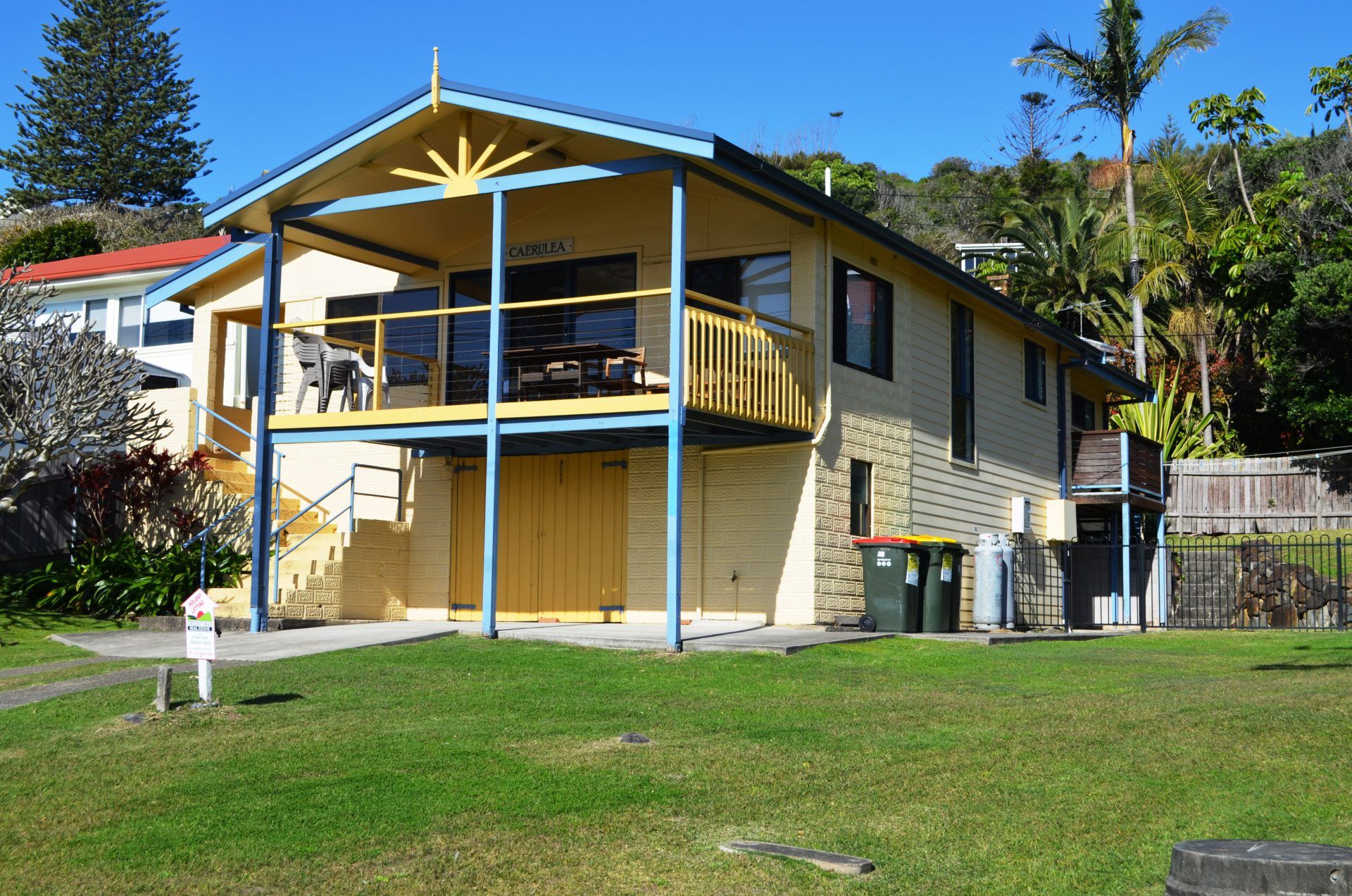 Caerulea is a welcoming holiday house with a prime headland location which boasts ocean and mountain views of Crescent Head's famous Point Break and Surfing Reserve. The property boasts five bedrooms, all with built-ins and tow with ceiling fan lights. There is an open kitchen and dining area. The kitchen boasts a glass cooktop, separate wall oven and dishwasher. There is a large lounge room to the front of the house which boasts ocean views from the armchair, this area open's out onto the covered North facing deck and again with ocean views. There is a new bathroom with separate shell shaped bath and shower, vanity and mirror. There is a small laundry nook with washing machine. Downstairs boasts the second shower and toilet and single lock up garage (low cars only) and a space for a box trailer.