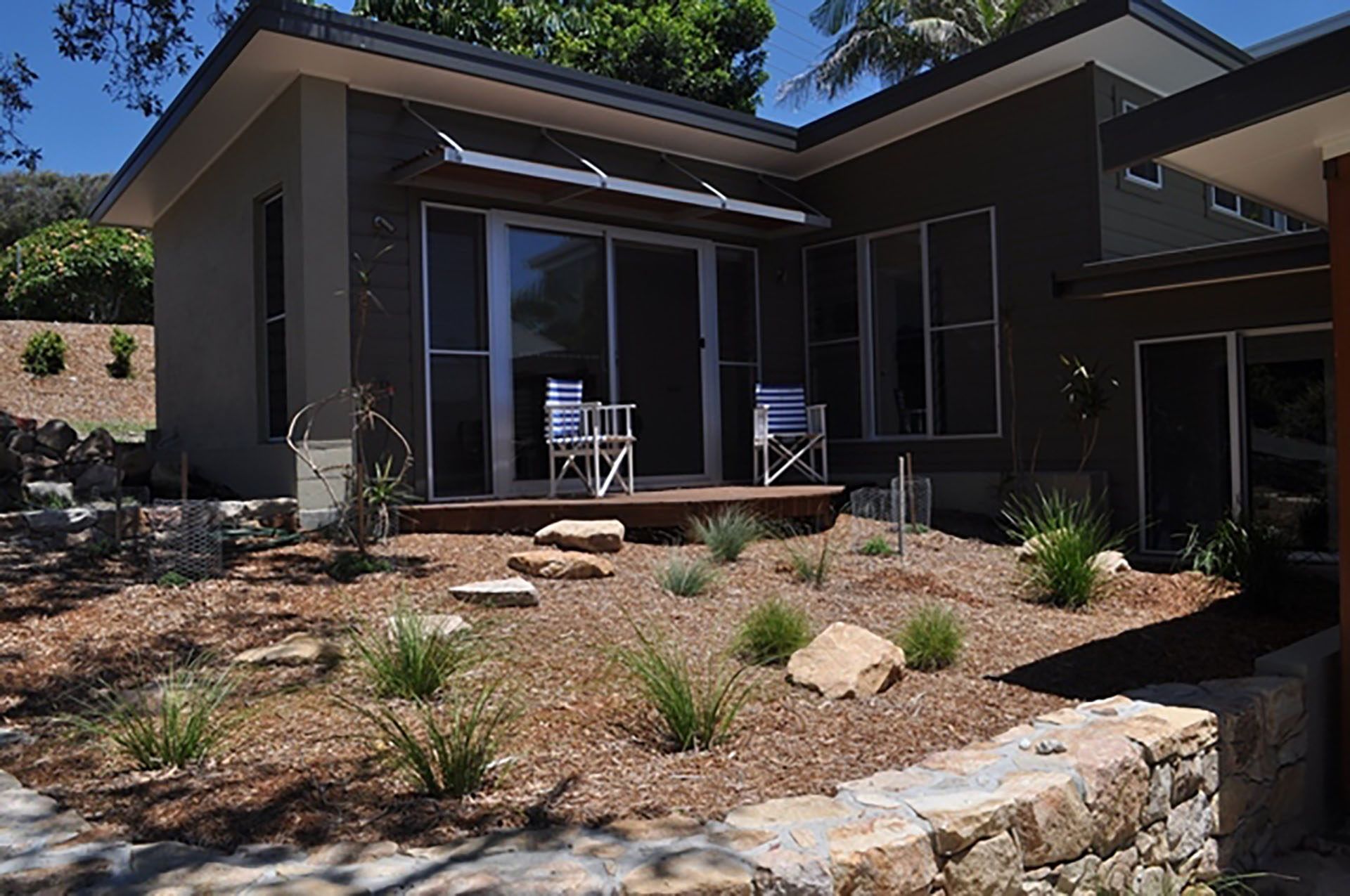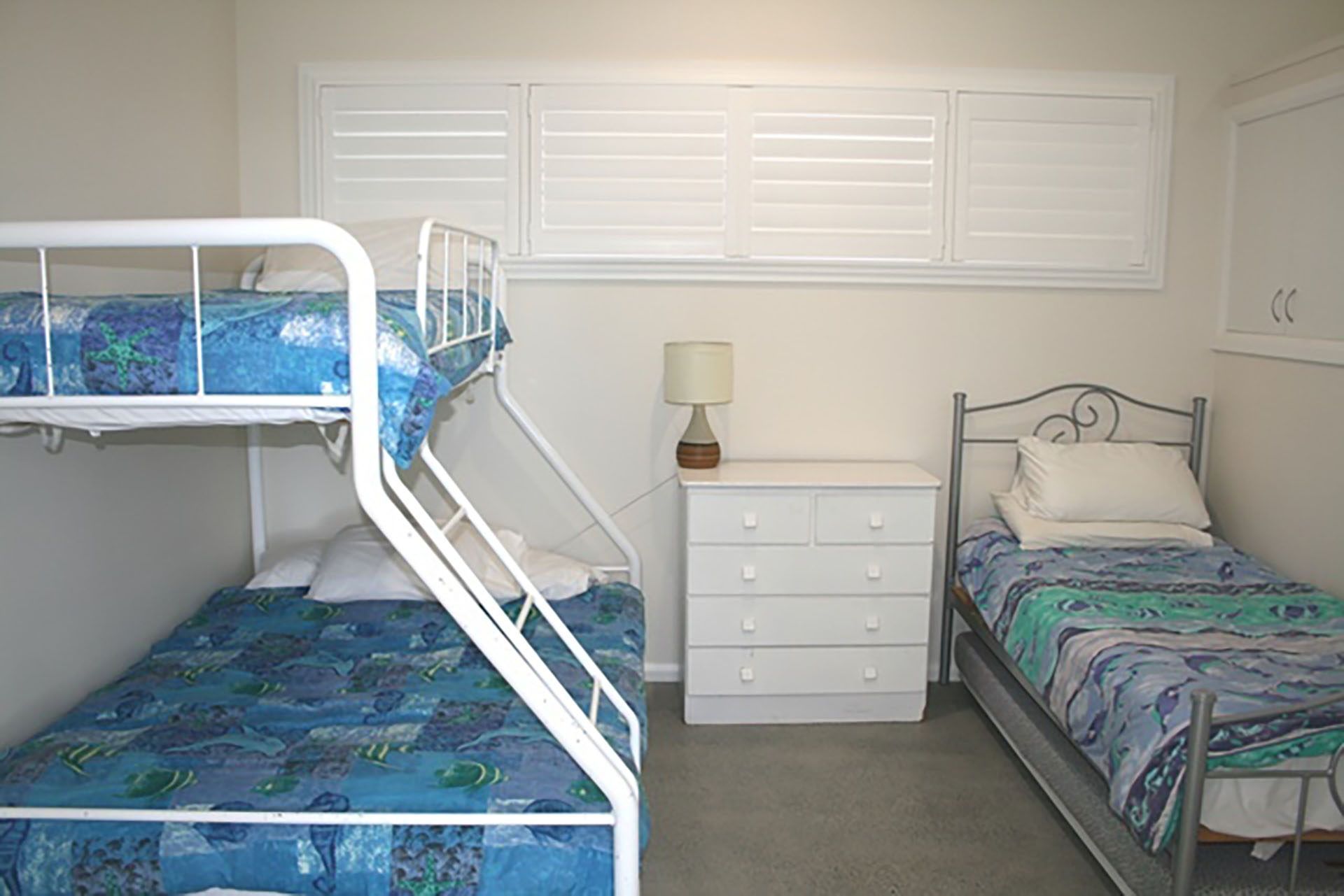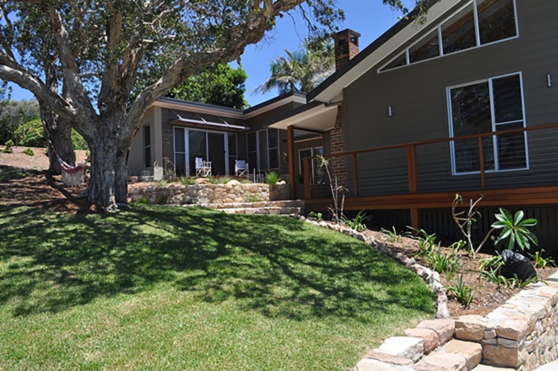 Level one boasts the second bedroom, generous bathroom and rumpus room. The second bedroom includes built-ins, ceiling fans and polished concrete flooring. The bathroom with shower and toilet is adjacent. The rumpus room has polished concrete flooring and sliding door exit to the upper level landscaping area. This area again boasts ocean views and can be opened right up to a protected sunny deck to take in this aspect. Bedding for this property consists of queen bed to master bedroom, tri bunk (double bed and one single) and single bed to second bedroom.